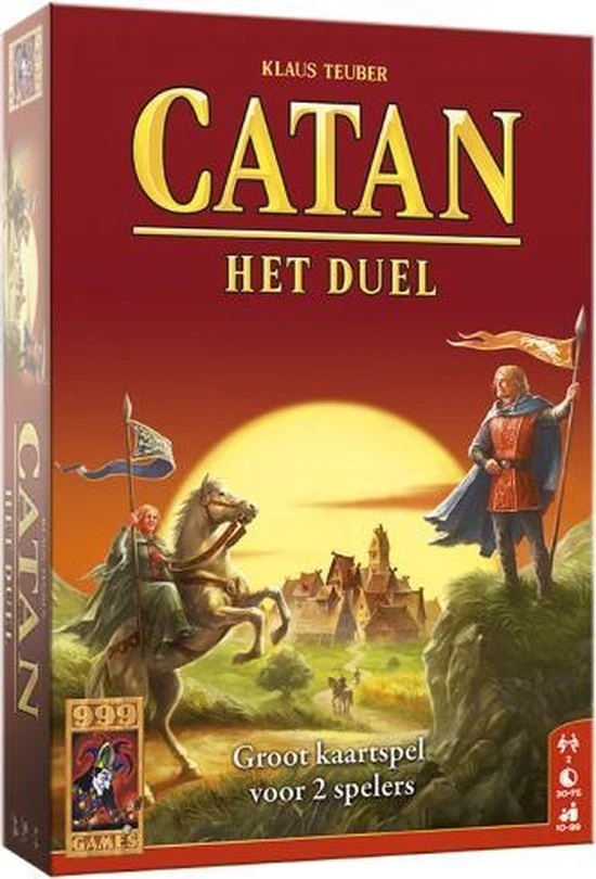 Hartelijk welkom bij “CATAN: Het Duel”, het kaartspel voor 2! In “Het Duel” beleef je als vorstin of vorst de wereld van Catan. Jouw taak bestaat uit het succesvol uitbreiden van jouw vorstendom en het tegelijkertijd in de gaten houden van de andere speler. Aan het einde heeft namelijk maar 1 speler de benodigde overwinningspunten voor de zege! De spelregels en het spel zijn zo opgebouwd dat je eerst door middel van een kort introductiespel met jouw vorstendom en de algemene spelmechanismen vertrouwd raakt. Daarbij wordt ongeveer de helft van de speelkaarten gebruikt. Voel je je comfortabel in jouw rol als vorst, dan kun je overgaan naar het gebruik van de “themasets”. Daarmee worden stap voor stap nieuwe kaartsoorten en spelmechanismen ge?ntroduceerd. Tegelijkertijd beleef je met de themaspellen een reis door de geschiedenis van Catan. Het basisspel speelt zich af tijdens de begintijd van de kolonisatie van Catan. De themaspellen leiden je door verschillende tijdperken erna, zoals “De Gouden Eeuw” en “De grote vooruitgang”. Nadat je alle 3 themasets gespeeld hebt, ken je alle speelkaarten in het spel en kun je je aan het “Duel der vorsten” wagen, waarbij alle kaarten uit het spel worden gebruikt. “Catan: Het Duel” is de nieuwe editie van het in 2010 verschenen “Vorsten van Catan”. De speelkaarten en spelregels zijn niet veranderd. Daardoor kun je deze editie zonder problemen met producten uit de “Vorsten van Catan”-reeks combineren. Hoe je de Vorsten van Catan als toernooi kan spelen vindt je hier.