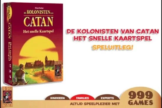 Vlot kaartspel voor 2-4 spelers, gebaseerd op het populaire bordspel Catan. Ook in dit kaartspel bouw je straten, dorpen en steden en zet je ridders in. Steden kunnen op verschillende manieren worden uitgebreid. Verder kun je met de andere spelers of met de markt en de gedekte stapel grondstoffen ruilen. Maar pas op: je straten en ridders kunnen zomaar door de andere spelers afgepakt worden. Zo zijn ook behaalde overwinningspunten niet altijd zeker. Het bouwen van een kerk of een stadsmuur kan echter bescherming bieden! De regels zijn relatief eenvoudig en je bent met een half uurtje klaar. Het spel is ook geschikt voor 2 spelers, omdat er alleen wordt geruild in plaats van gehandeld!