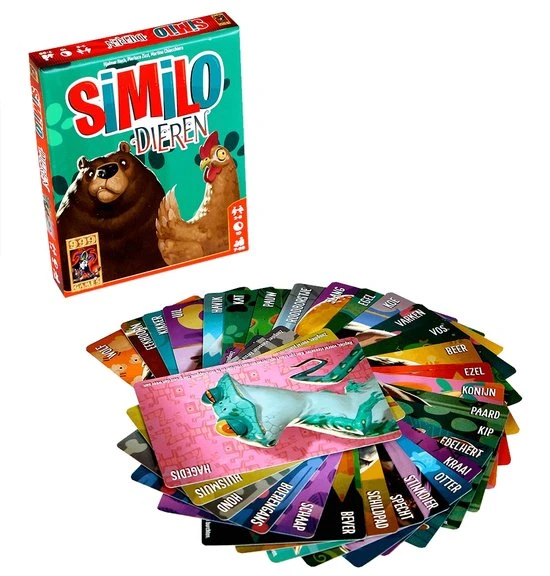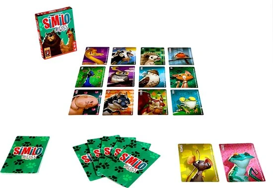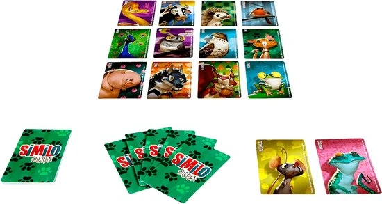 Werk samen om het juiste dier uit een groep van 12 dierenkaarten te achterhalen! De spelleider geeft hints door nieuwe kaarten te laten zien. De spelleider mag alleen aangeven of het juiste dier met de nieuwe kaart verschilt of juist overeenkomt. Vervolgens wijs je dieren aan, waarmee je de dierkaarten verwijdert waarvan jij denkt dat dit niet de juiste dieren zijn. Als je een hint verkeerd opvat en per ongeluk de juiste kaart aanwijst, ben je af. Net als Similo: Sprookjes en Similo: Historie is ook Similo: Dieren een makkelijk te leren spelletje. Door de korte tijdsduur en de handige verpakking is Similo overal te spelen. Net als bij de andere delen zijn de kaarten voorzien van vrolijke en prachtige illustraties. Alle delen van Similo kunnen met elkaar worden gecombineerd voor meer uitdaging.