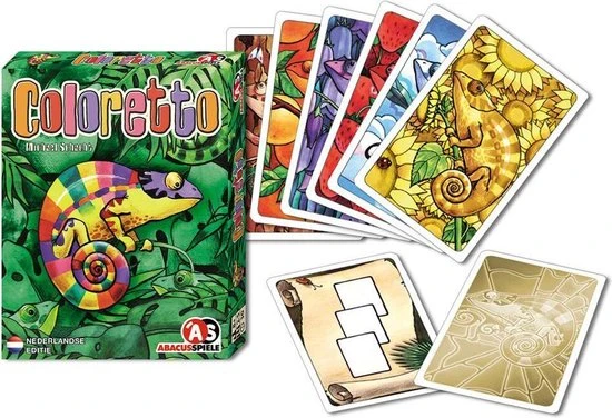 Al jarenlang worden spelers uit de hele wereld gegrepen door het kleurrijke kaartspel Coloretto. Of je het nu speelt met familie, vrienden of op vakantie, Coloretto is een spel voor iedereen en past bij iedere gelegenheid. Doel van Coloretto is om de meeste punten te scoren door de juiste kleurenkaarten te verzamelen. Maar pas op: voor slechts 3 van jouw kleuren krijg je pluspunten, de andere kleuren geven minpunten. Deze vernieuwde Nederlandstalige uitgave van Coloretto bevat nieuw artwork, een speciale ?gouden? jokerkaart en maakt bovendien het spel nu ook geschikt voor twee spelers.