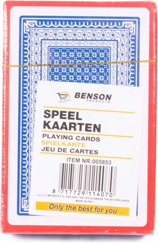- 1 pakje speelkaarten voorzien van een plastic coating.