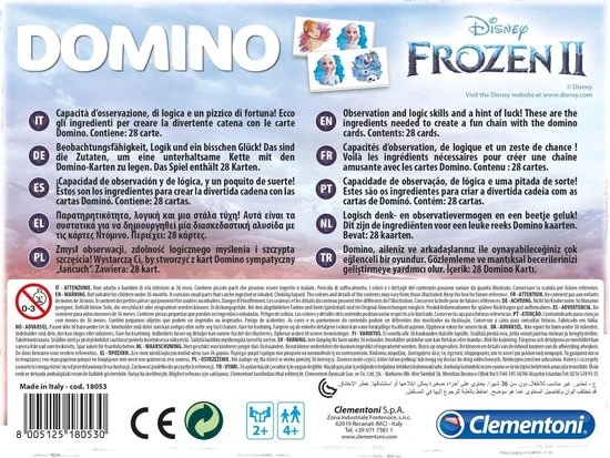 Het traditionele spel van dominostenen werd net kleurrijk met afbeeldingen van de personages van Frozen 2! Combineer de kaarten en daag je vrienden uit voor eindeloos plezier! Stimuleert logisch denken, observatie en aandachtsvaardigheden.