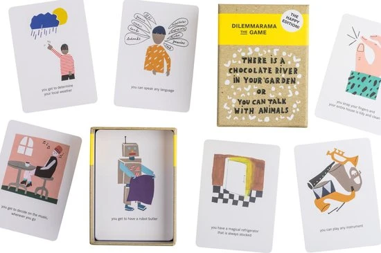 For this happy edition of Dilemmarama we’ve only selected positive dilemmas. The kind that will put a smile on your face, but that will also cause heated debates and feisty duels. And, because everything in life is a dilemma, there are two game options to choose from.