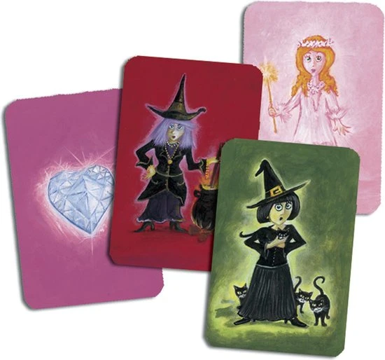 Dit spel is ideaal voor jonge avonturiers met strategisch inzicht! Bedenk je eigen strategie om zo snel mogelijk je kasteel te bouwen, voor de boze heksen je betoveren! Elk spel bevat 54 kaarten. Geschikt voor 2 tot 4 spelers vanaf 5 jaar.