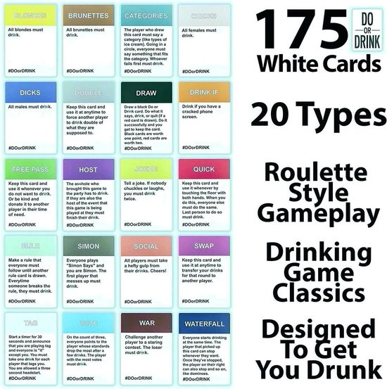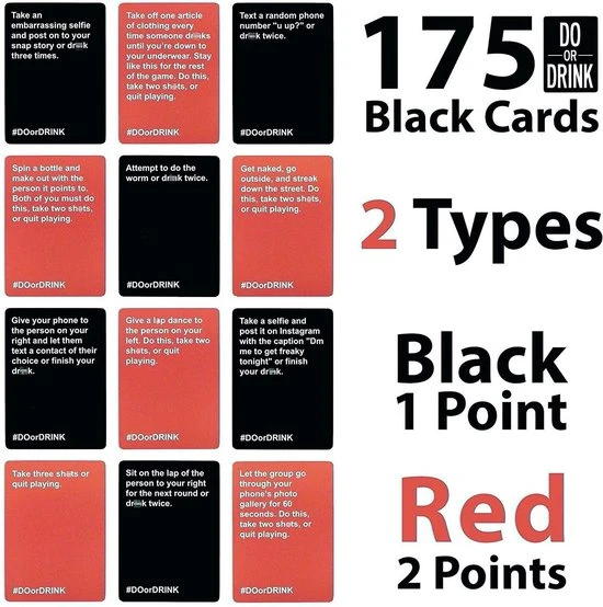Do or Drink is het leukste gezelschapsspel, het is een waanzinnig feest in een doosje. Perfect voor je volgende feest, bijeenkomst of game-avond.