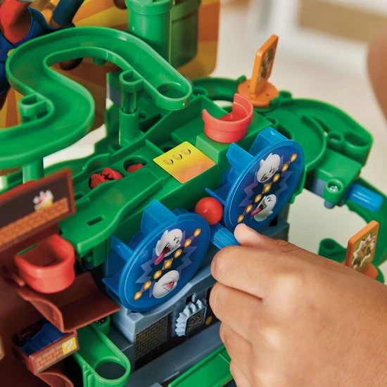 Lever je knikker voorzichtig af met behulp van de 3 knoppen en de 2 draaiende wielen die door de 7 lastige zones gaan om je doel te bereiken.