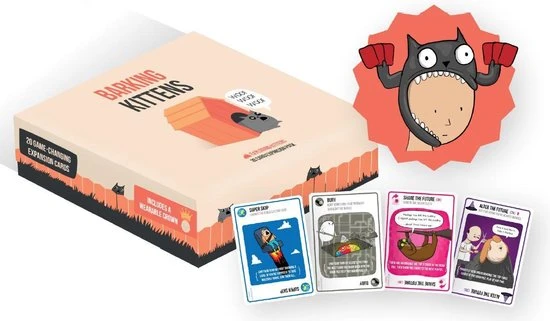 Exploding Kittens’ Barking Kittens is de derde uitbreiding voor het uitermate populaire kaartspel Exploding Kittens.Deze uitbreiding bevat 20 kaarten en instructies die het basispel vernieuwen, wat zorgt voor extra strategie en hilariteit.