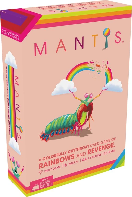 Het familiespel Mantis draait om het onderwater schaaldier en zijn vermogen om verschillende kleuren te zien, gebaseerd op de webcomic van The Oatmeal. Het doel van het spel is om zoveel mogelijk kaarten te verzamelen en daarmee zoveel mogelijk punten te scoren. Degene die als eerste 10 punten scoort heeft gewonnen!