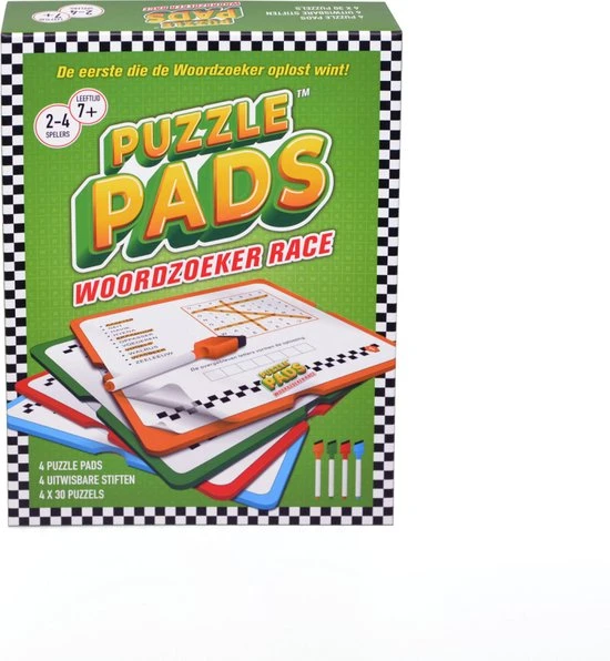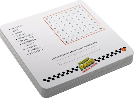 Dit is een bordspel gebaseerd op de bekende woordzoeker. Met het spel Puzzlepad – woordzoeker race, kan je de bekende woordzoeker nu tegen elkaar spelen. Zoek zo snel mogelijk alle woorden, de snelste wint! Wie heeft als eerste alle woorden gevonden? Voor 2 tot 4 spelers vanaf 7 jaar.