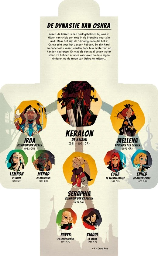 De koninginnen schieten hun kinderen te hulp! Met deze uitbreiding van 18 nieuwe kaarten kun je weer vele nieuwe avonturen in Oshra beleven. Deze eerste uitbreiding op het spel Hidden Leaders bevat 3 modules die naar keus aan het basisspel kunnen worden toegevoegd: