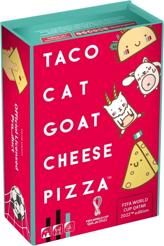 | Verpakkingsinhoud | 1x, kaartspel, Taco, Cat, Goat, Cheese, Pizza, FIFA, world, cup, edition, (01952). |