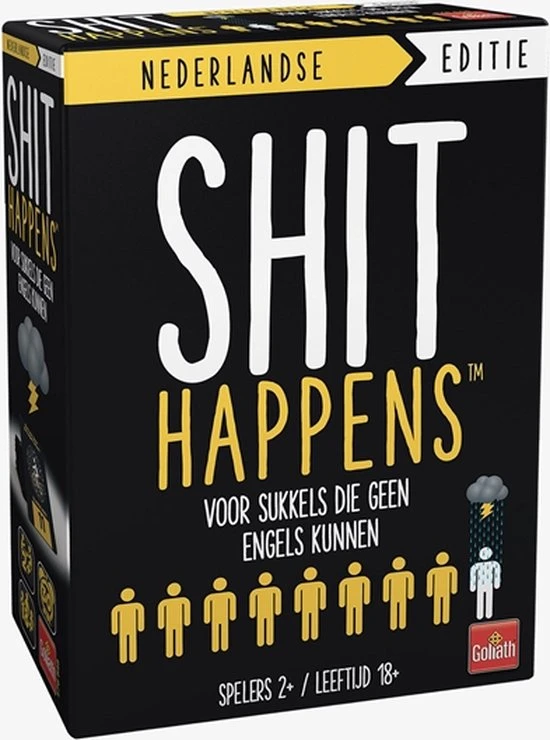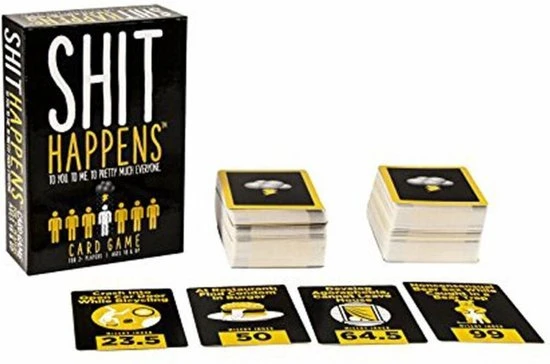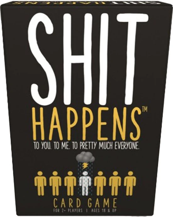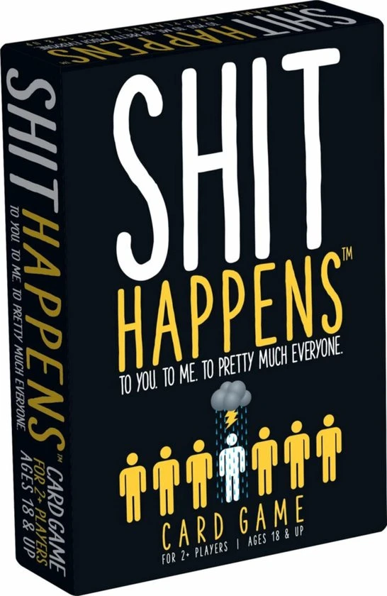 Het leven valt niet mee! Shit Happens is een hilarisch en weerzinwekkend, maar levensecht partyspel. Je komt allerlei ongewenste situaties tegen die je moet rangschikken op jouw lane of pain. Die loopt van 1 tot 100. Wat is erger? Je vader in z’n nakie zien of elke nacht in bed plassen? Verzamel 10 ellendige kaarten en win het spel!
