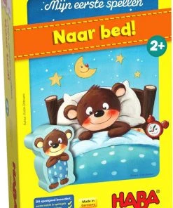 ‘Naar Bed‘ van Haba is een leuk ordenings- en geheugenspelletje over slapengaan, afgewerkt in hout en stevig karton! Het is de hoogste tijd om naar bed te gaan! Maar het konijn, de beer en de kat kunnen niet slapen, want hun bedden, hoofdkussens en dekens zijn helemaal overhoop gehaald. Bovendien wil elk dier ook absoluut zijn favoriete knuffeldier. Wanneer de kinderen een goed geheugen en een beetje geluk bij het omdraaien van de plaatjes hebben, slagen ze erin om de dieren snel naar bed te brengen. Korte instructies: