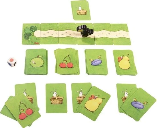 Kunnen de kinderen al het fruit oogsten voordat de raaf de boomgaard bereikt? Een samenwerkingsspel voor 1 – 6 kinderen. Verkrijgbaar met Nederlandse verpakking.