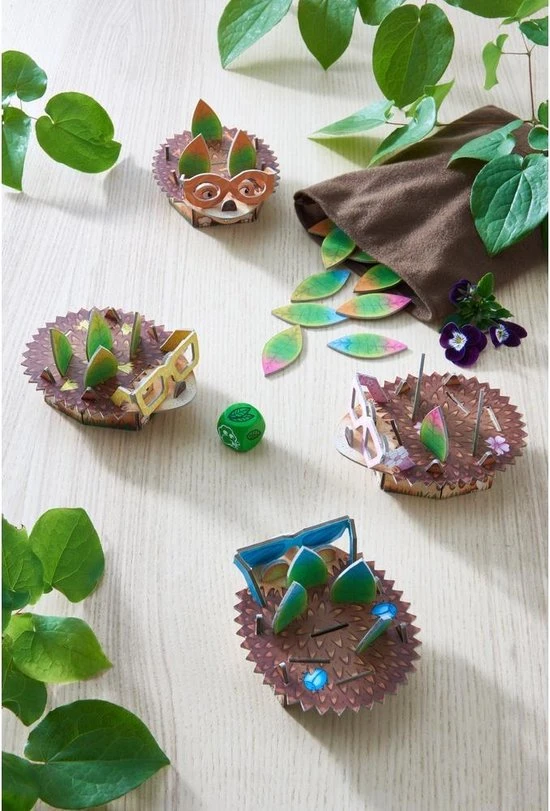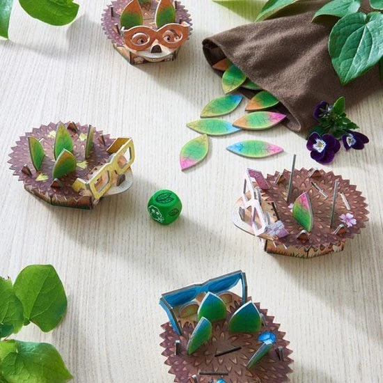 - Inhoud: 4 egels (bestaande uit 3 egelonderdelen & 1 bril), 30 blaadjes, 1 dobbelsteen, 1 blaadjeszakje, 1 handleiding in Frans, Spaans, Italiaans, Duits, Engels en Nederlands