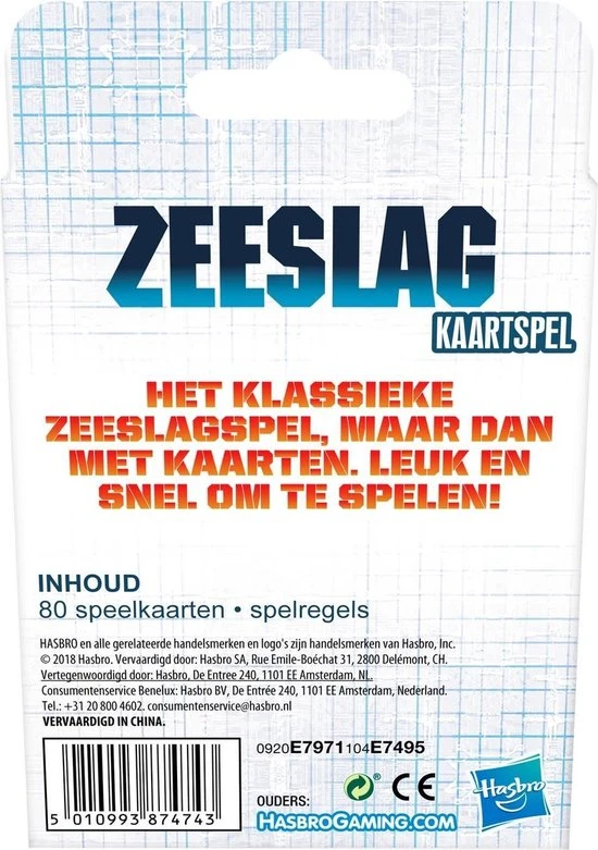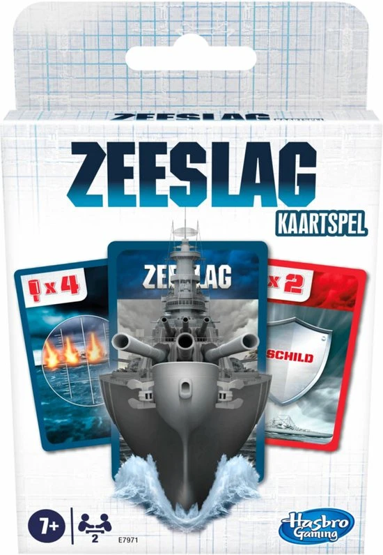 Het klassieke Zeeslag-spel is er nu ook in de vorm van een leuk kaartspel dat je snel kunt spelen! In deze versie van Zeeslag leg je je coördinatenkaarten voor je en kies je de slagkaarten uit je speelkaarten om een pinnetjeskaart of een powerkaart te spelen. Het is een spannend strategiespel waarbij spelers hun kaarten gebruiken om vijandelijke schepen te zoeken, te raken en tot zinken te brengen. Jongere spelers kunnen de spelregels voor beginners gebruiken die in de spelgids staan. De speler die er als eerste in slaagt om de 5 schepen van de tegenstander tot zinken te brengen, wint het spel! Dit kaartspel is praktisch voor kinderen om een versie van Zeeslag onderweg of naar het huis van een vriend mee te nemen.