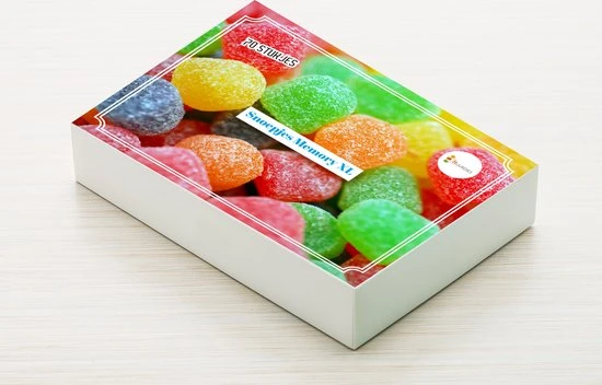 Snoep 2021 Memory Game, 70 kaarten gerelateerd aan diverse snoepsoorten. Daag je geheugen uit! Huurdies memory kaarten kwaliteit is prachtig, omdat ze in eigen huis geproduceerd worden.