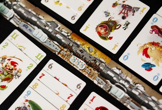 Het kaartspel Schotten Totten 2 bestaat uit vijf kleuren van kaarten (nummers 0-11) en tien tactische kaarten.