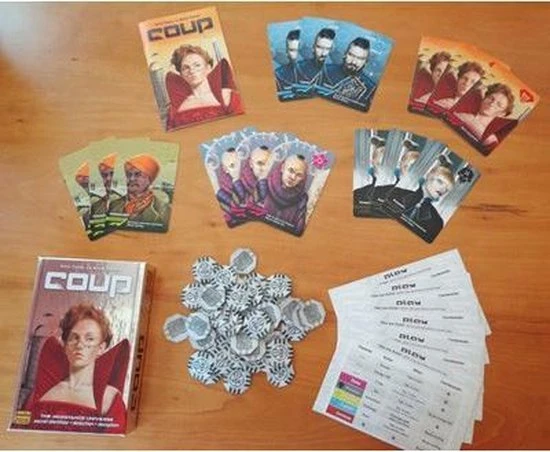 Stand-alone kaartspel in de wereld van The Resistance. In het kaartspel Coup probeer je de laatste speler te zijn die overblijft in een klassieke machtsstrijd! Je staat namelijk aan het hoofd van een familie in een corrupte Italiaanse stad. Om de machtigste familie te blijven, dien je te manipuleren, bluffen en omkopen… Je doel is om de invloed van alle andere families te vernietigen, waardoor ze in ballingschap dienen te leven. Slechts ??n familie zal de sterkste blijken…