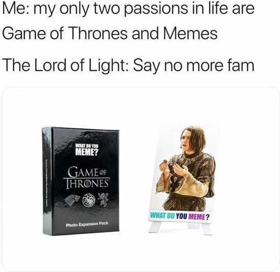Met deze zeer speciale Game of Thrones Photo Expension pack beschik je over memes van de zeer bekende serie Game of Thrones. Kun jij dit aan?