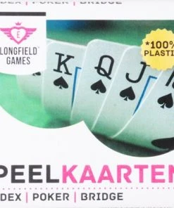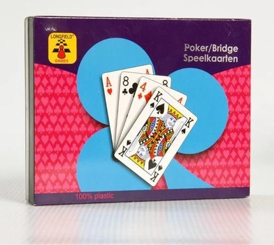 Met deze Longfield Poker / Bridge Speelkaarten gemaakt van 100% plastic speelkaarten win je gegarandeerd! Deze set kaarten zijn bedrukt met Engelse poppen en worden geleverd in een Plastic doosje.