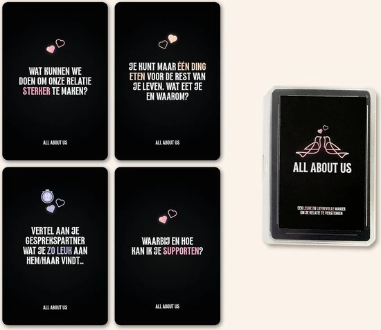 All About Us is een kaartenspel voor koppels waarin je elkaar beter leert kennen.