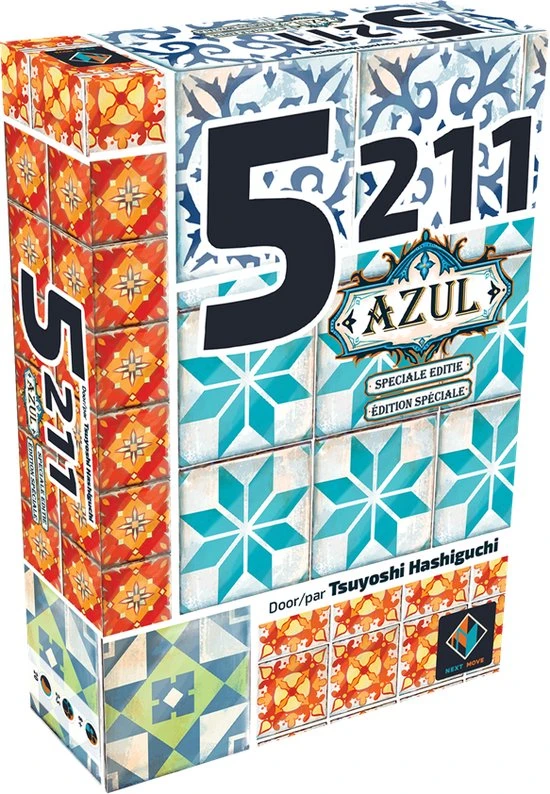 5211 is een snel en spannend bluf- en strategiespel dat nu in een speciale Azul editie uitgebracht wordt, dat wil zeggen met het artwork van Azul. Doel is om de meeste punten te scoren door middel van het uitspelen van kaarten in diverse rondes. De score die je behaalt hangt af van de speciale kaarten met daarop de Haan van Barcelos (een Portugese legende) en of er een meerderheid in kleur is met jouw kaarten. Anticipeer op je tegenstanders om de hoogste score te behalen!