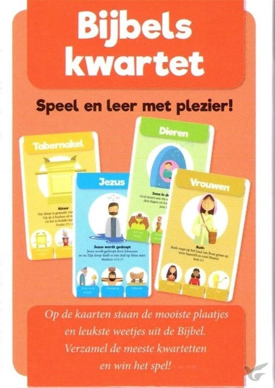 Een simpel maar super leuk Bijbels spel voor het hele gezin? Het Bijbels Kwartet is daar helemaal voor geschikt. Dit kwartet is niet alleen leuk om te spelen zoals elk kwartet, het leert de spelers namelijk ook verhalen en weetjes uit de Bijbel. De passende afbeeldingen maakt het juist voor de kinderen erg toegankelijk!