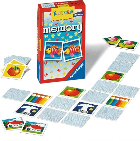 Het bekende memoryspel. Zoek de bijpassende afbeeldingen bij elkaar. Kan jij de afbeeldingen onthouden om ze weer terug te vinden? Geschikt voor 2 tot 8 spelers, leeftijd vanaf 4 jaar.