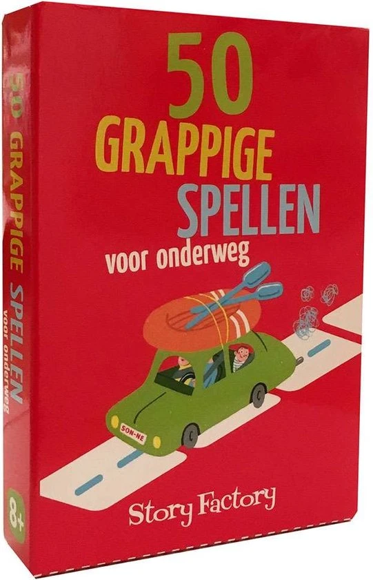 50 grappige spellen voor onderweg….is een leuk kaartspel met 50 mooi ge?llustreerde opdrachten, spelvoorbeelden, rekenen, nadenken, spelen, raden, verzinnen. You name it. Voor ieder wat wils! Spelletjes voor 1 speler, spelletjes voor 2 of meer spelers je vind er altijd wel iets leuks tussen om die saaie reis naar je vakantie bestemming door te komen.