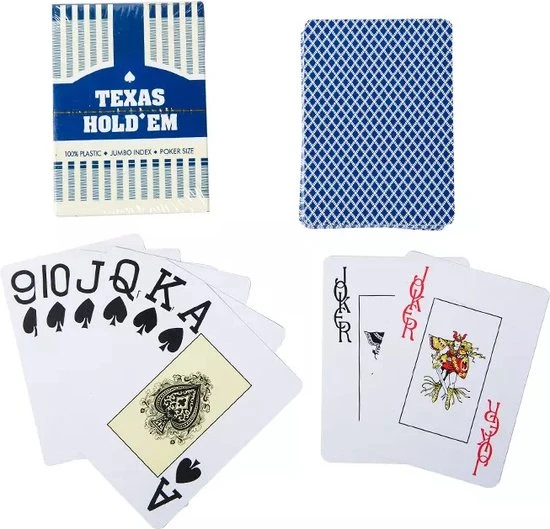 Bij een goed potje poker horen goede speelkaarten. Gebruik nu de Texas Hold’em speelkaarten. Deze kaartspelen zijn speciaal gemaakt voor het spelen van Texas Hold’em poker en hebben dan ook de officiele afmetingen van poker kaarten.