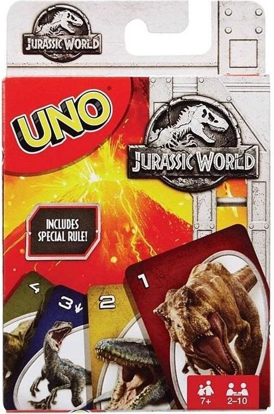 Ben jij een echt Jurassic World fan en vind je het leuk om UNO te spelen. Dan is dit het perfecte spel voor jou! De UNO-kaarten zijn omgetoverd tot echte Jurrassic World kaarten.