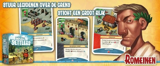 Kolonisten van vier wereldmachten hebben een nieuw gebied ontdekt met een rijkdom aan grondstoffen en mogelijkheden. De Romeinen, Barbaren, Egyptenaren en Japanners trekken tegelijkertijd dit gebied in om de grenzen van hun rijk te verleggen. Maar al snel komen ze er achter dat het gebied veel te klein is voor iedereen….Imperial Settlers is een klaartspel waarin de spelers in vijf rondes nieuwe gebieden ontdekken, locaties bouwen, grondstoffen produceren, goederen ruilen, vijanden aanvallen en door het verzamelen van overwinningspunten hun volk naar de overwinning leiden.