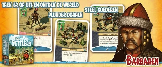 | Verpakkingsinhoud | 1, scorebord, 4, markeerfiches, 1, rondefiche, 4, volkborden, 84, algemene, kaarten, 30, Barbarenkaarten, 30, Japan, kaarten, 30, Romeinen, kaarten, 30, Egypte, kaarten, 16, aanvalskaarten, 130, houten, speelstukken, 18, plunderfiches, 10, verdedigingsfiches, 24, goudfiches, 6, verzamelfiches, 1, startspelerfiche, 4, Egypte, fiches, spelregels |