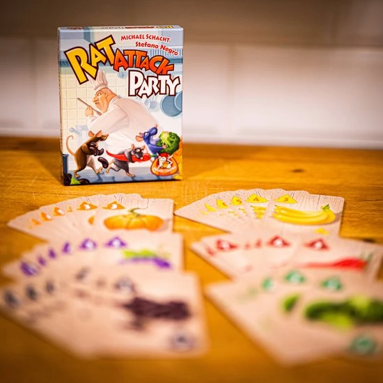 Rat Attack Party is een uitdagend kaartspel waarbij je zoveel mogelijk punten moet scoren. Je kunt veel lekker eten in de keuken vinden, maar pas op voor de chef en kijk uit voor de katten! Als je ze niet op tijd kwijt raakt, levert het minpunten op. Bemachtig jij genoeg voedsel uit de keuken om eindpunten te verdienen en het spel te winnen?