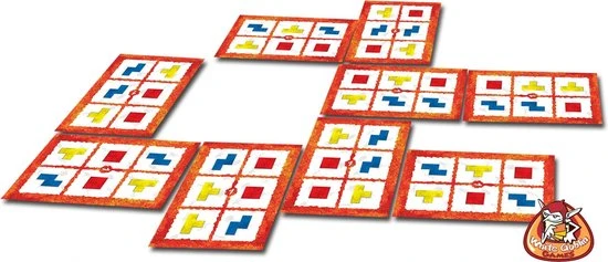 Het bekende bordspel, nu als vlot kaartspel! Iedere speler krijgt negen kaarten waarop zes Ubongo-symbolen zijn afgebeeld. Na het startsignaal gaat iedereen gelijktijdig proberen om zo snel mogelijk zeven van zijn negen kaarten correct voor zich neer te leggen. Degene die dat als eerste lukt, roept “Ubongo!” en verdient 10 punten. De andere splers krijgen natuurlijk ook punten. Elke ronde loopt de spanning verder op. Degene die na zes rondes de meeste punten heeft, wint het spel. Klinkt eenvoudig, toch? Maar probeer dit maar eens onder tijdsdruk. Puzzel snel en scoor die punten!